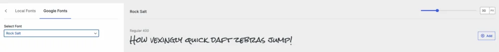 Wähle „Custom Fonts Plugin“ als Quelle aus und das Dropdown-Menü zeigt dir eine Liste aller Schriften, die du hinzugefügt hast.